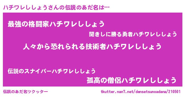 | ヒーロー風カッコイイあだ名 | 『友情の使者ハチワレししょう』 |