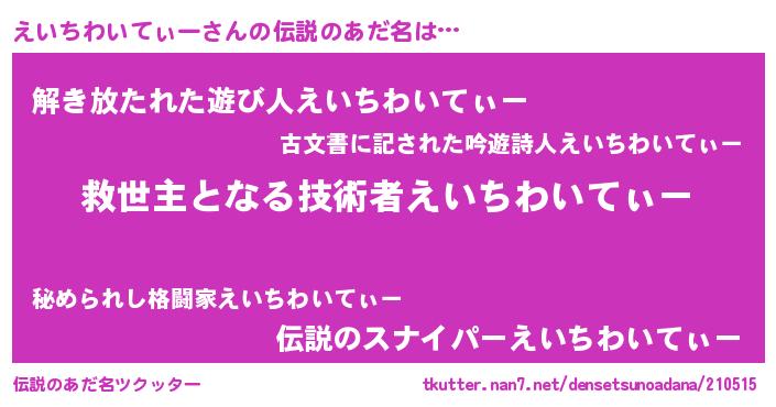 | 意味不明あだ名 | 『自称えいちわいてぃー』 |