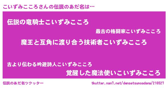 | 女子向けラノベタイトル風あだ名 | 『こいずみこころ恋絵巻』 |