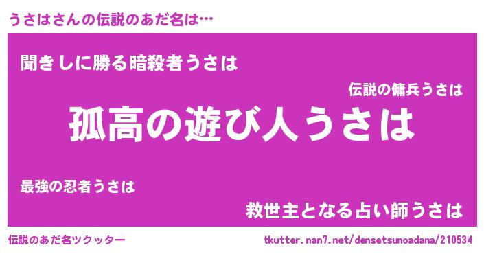 | 意味不明あだ名 | 『とにかく怪しいうさは』 |