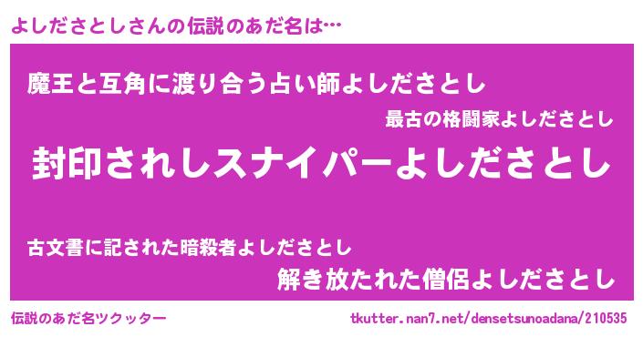 | 女子向けラノベタイトル風あだ名 | 『よしださとしストレイドッグス』 |