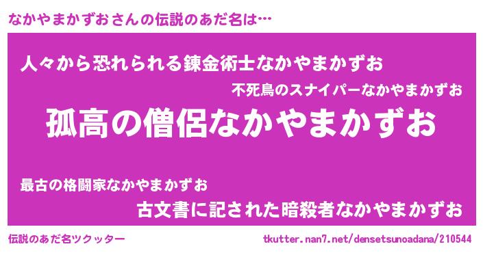 | 男性向けラノベタイトル風あだ名 | 『ダンジョンになかやまかずおを求めるのは間違っているだろうか』 |