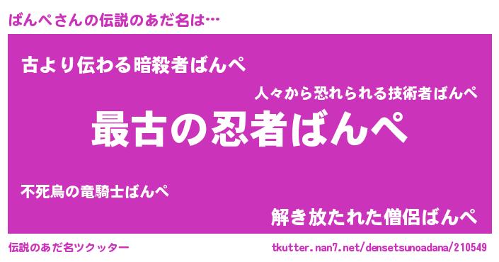 | 意味不明あだ名 | 『ばんぺフォーエバー』『永久保存ばんぺ』 |