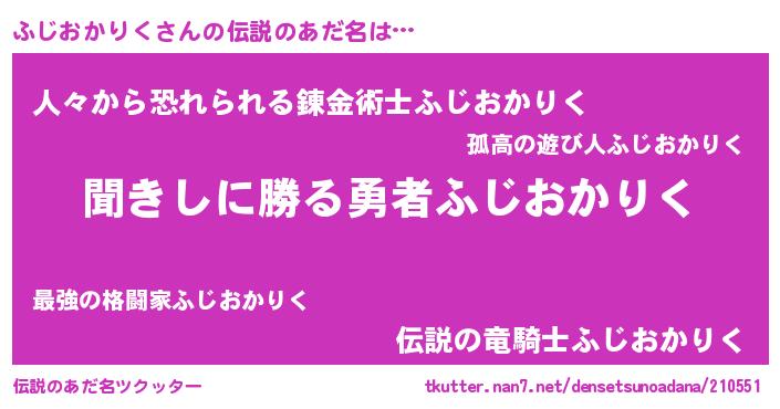 | 胡散臭い通販商品みたいなあだ名 | 『絶対に幸福をもたらす水素水…その名も「ふじおかりく」』 |