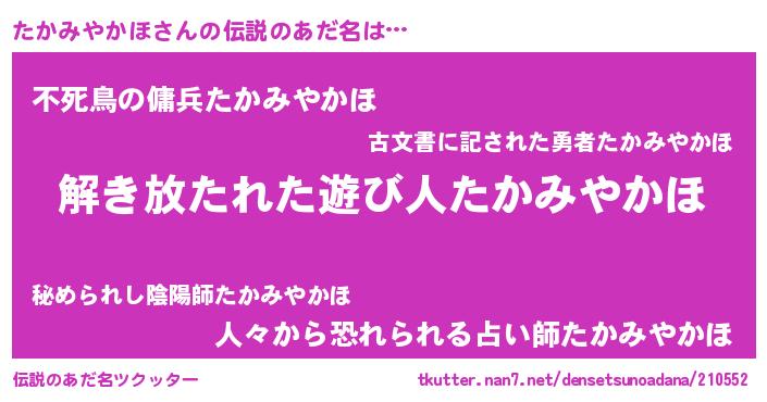 | 意味不明あだ名 | 『とにかく怪しいたかみやかほ』 |