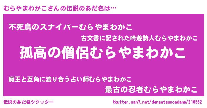 | ポケモン風あだ名 | 『ヒムラヤマワカコ』『ムラゴンZ』 |