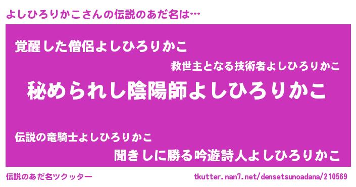 | ファンタジー風あだ名 | 『エターナルヨシヒロリカコー』 |