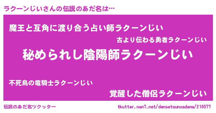 | ファンタジー風あだ名 | 『エターナルラクーンジイー』 |