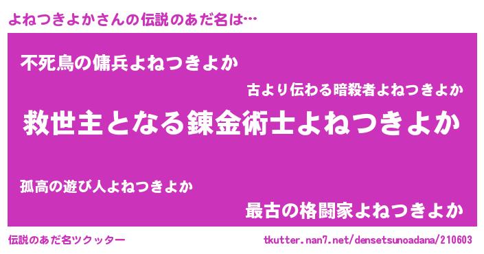| 肩書あだ名 | 『よねつきよか上級大将』 |