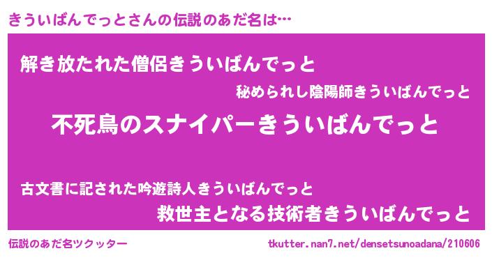 | 意味不明あだ名 | 『住所不定無職きういばんでっと(74歳)』 |