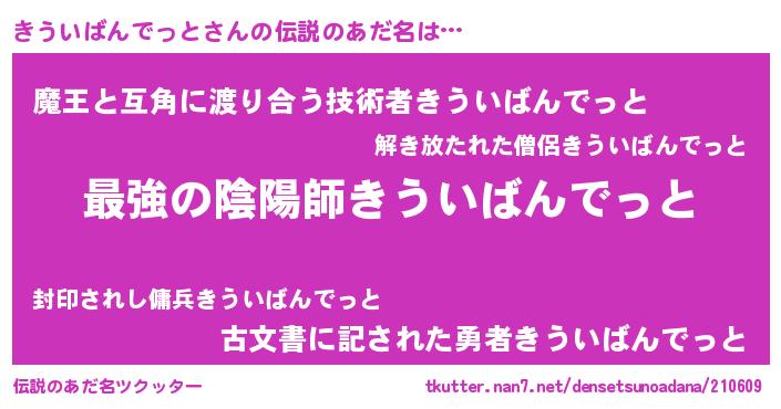 | 男性向けラノベタイトル風あだ名 | 『この素晴らしい世界にきういばんでっとを!』 |