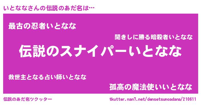 | 胡散臭い通販商品みたいなあだ名 | 『必ず成功する霊験あらたかなお札…その名も「いとなな」』 |