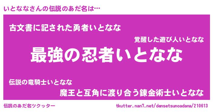 | ヒーロー風カッコイイあだ名 | 『ウルトラいとななマン』『仮面イトダー』 |