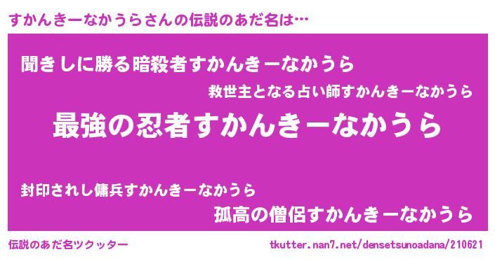 | 意味不明あだ名 | 『すかんきーなかうらフォーエバー』 |