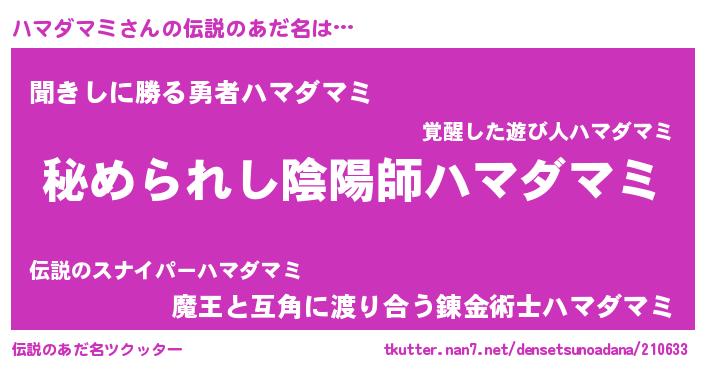 | ファンタジー風あだ名 | 『エターナルハマダマミー』『ゼハマトゥ』 |