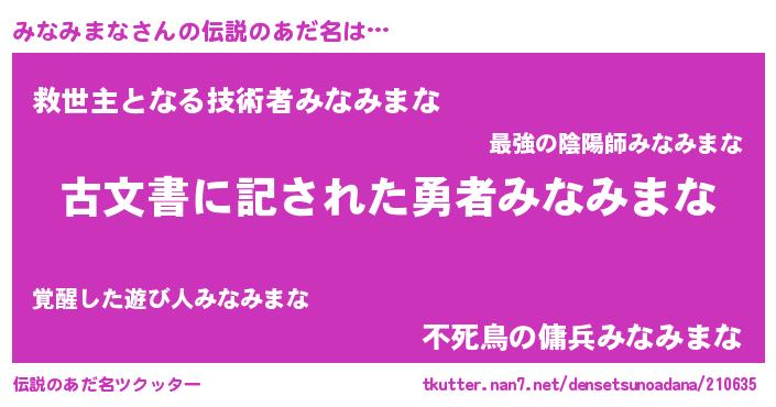 | 意味不明あだ名 | 『永久保存みなみまな』 |