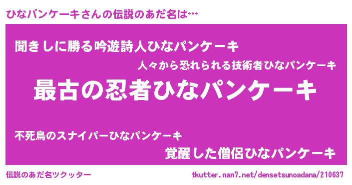 | ファンタジー風あだ名 | 『エターナルヒナパンケーキー』 |