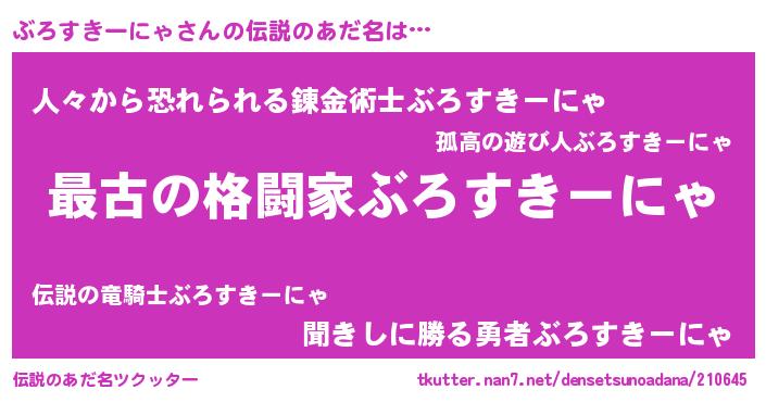 | 意味不明あだ名 | 『ぶろすきーにゃフォーエバー』 |