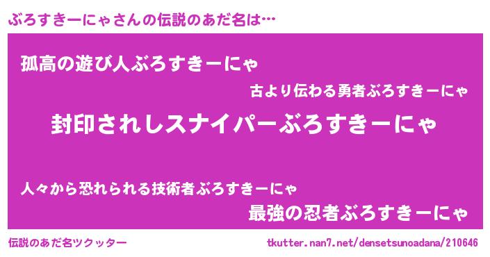 | 胡散臭い通販商品みたいなあだ名 | 『億万長者になれる霊験あらたかなお札…その名も「ぶろすきーにゃ」』 |