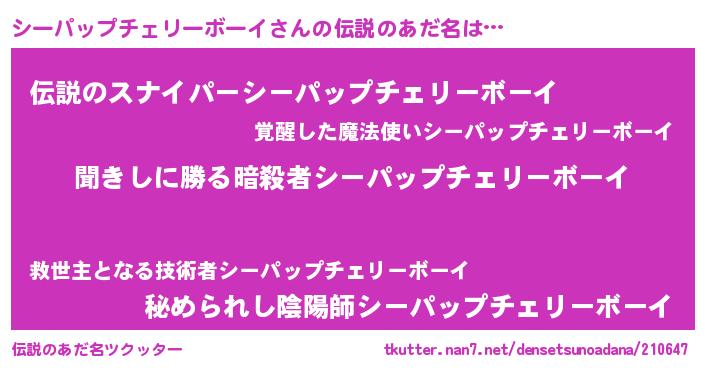| ヒーロー風カッコイイあだ名 | 『ネオシーパップチェリーボーイ』 |