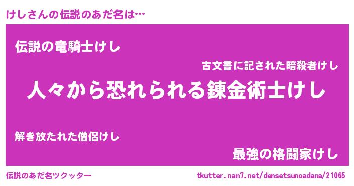 | ヒーロー風カッコイイあだ名 | 『友情の使者けし』『スーパーケシ』 |