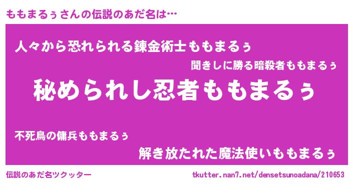 | 胡散臭い通販商品みたいなあだ名 | 『幸せが訪れる高級そうな壺…その名も「ももまるぅ」』 |