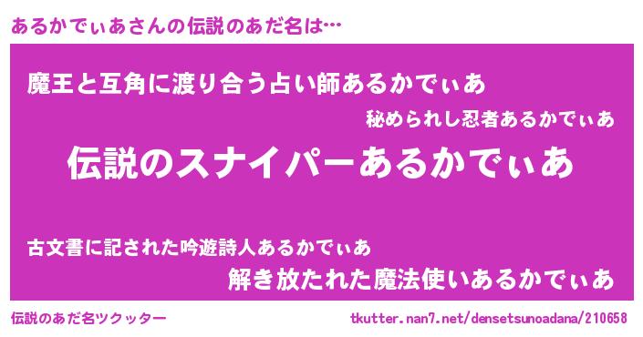 | 胡散臭い通販商品みたいなあだ名 | 『必ず成功する霊験あらたかなお札…その名も「あるかでぃあ」』 |