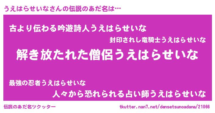 | 意味不明あだ名 | 『自称うえはらせいな』 |