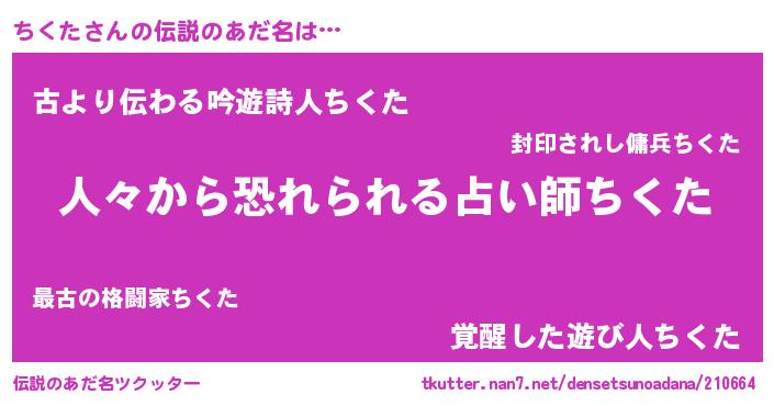 | ヘコむあだ名 | 『ちくた(苦笑)』『ちくを』 |