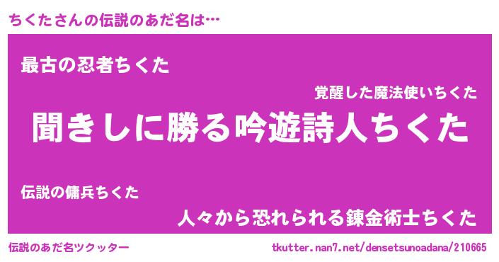 | 意味不明あだ名 | 『永久保存ちくた』『ちくたフォーエバー』 |