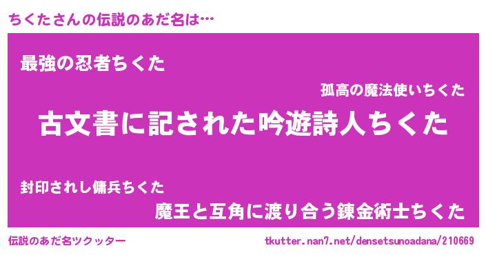 | ファンタジー風あだ名 | 『チクディッシュ』『エターナルチクター』 |
