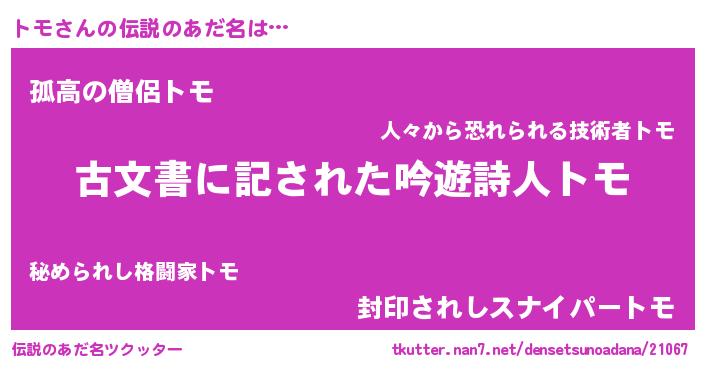 | 意味不明あだ名 | 『住所不定無職トモ(10歳)』『永久保存トモ』 |