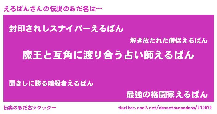 | ヒーロー風カッコイイあだ名 | 『友情の使者えるばん』『仮面エルダー』 |