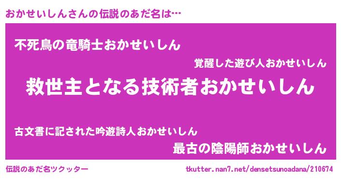 | ヒーロー風カッコイイあだ名 | 『慈愛の使者おかせいしん』 |
