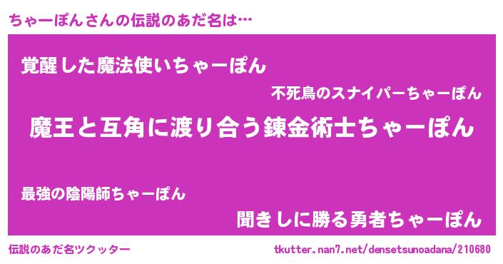 | ヒーロー風カッコイイあだ名 | 『愛の使者ちゃーぽん』『仮面チャダー』 |