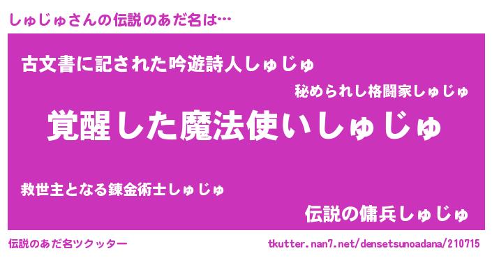| ヒーロー風カッコイイあだ名 | 『天弓騎士シュ』『ネオシュジュ』 |
