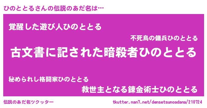 | 意味不明あだ名 | 『永久保存ひのととる』 |