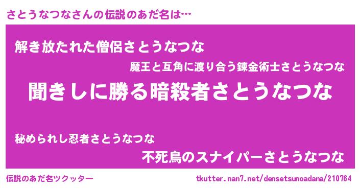 | 意味不明あだ名 | 『永久保存さとうなつな』 |