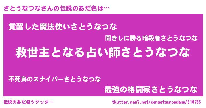 | 意味不明あだ名 | 『住所不定無職さとうなつな(39歳)』 |