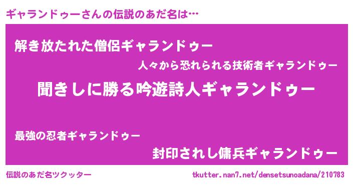 | ヒーロー風カッコイイあだ名 | 『ネオギャランドゥー』『銀牙騎士ギャ』 |