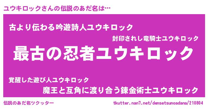 | ファンタジー風あだ名 | 『エターナルユウキロックー』 |