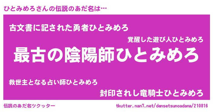 | ファンタジー風あだ名 | 『エターナルヒトミメロー』『ゼヒトトゥ』 |