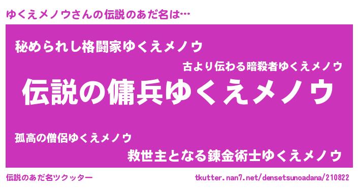| 意味不明あだ名 | 『自称ゆくえメノウ』 |