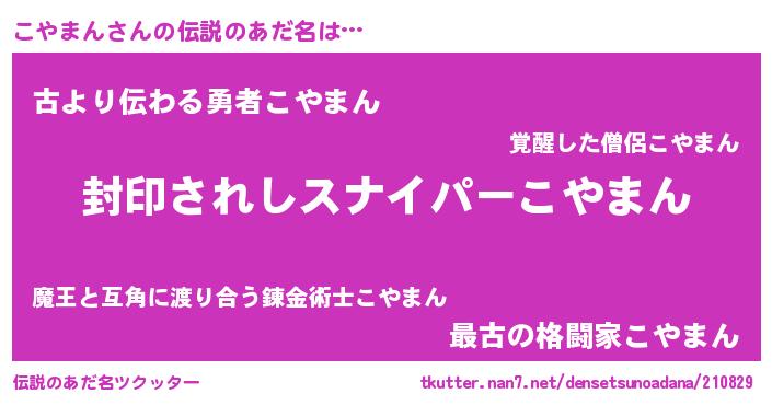 | ヒーロー風カッコイイあだ名 | 『スーパーコヤマン』『仮面コヤダー』 |