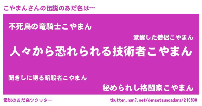 | 意味不明あだ名 | 『自称こやまん』『ペロリンこやまん』 |