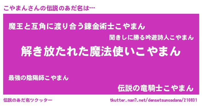 | ヒーロー風カッコイイあだ名 | 『サイバー戦士コヤマン』『魔戒騎士コヤ』 |