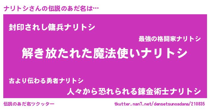 | ヒーロー風カッコイイあだ名 | 『仮面ナリダー』『究極戦士ナリトシ』 |