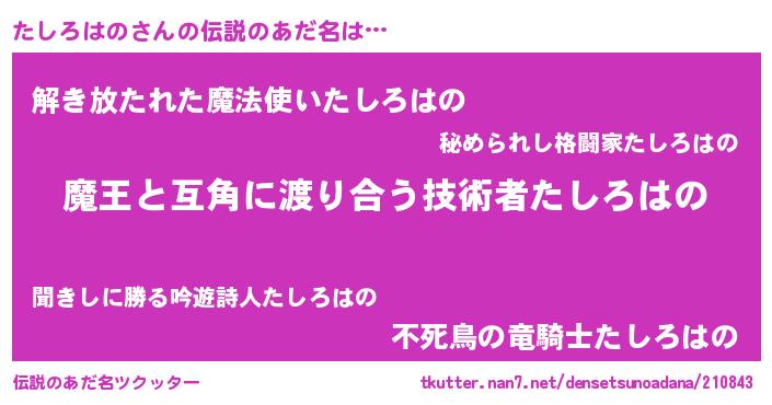 | ヒーロー風カッコイイあだ名 | 『友情の使者たしろはの』『銀牙騎士タシ』 |