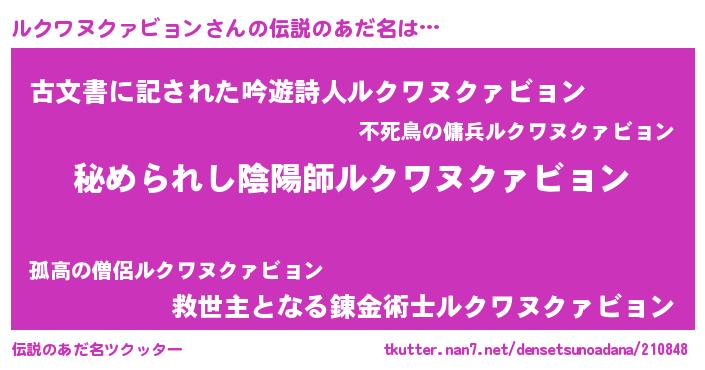 | ファンタジー風あだ名 | 『エターナルルクワヌクァビョンー』 |