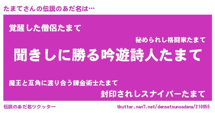 | 意味不明あだ名 | 『永久保存たまて』『めかぶ科たまて属』 |